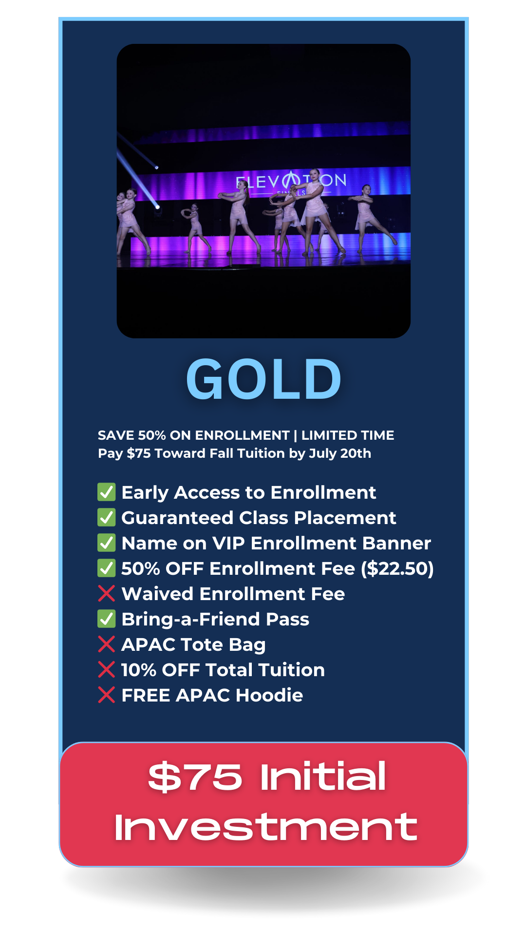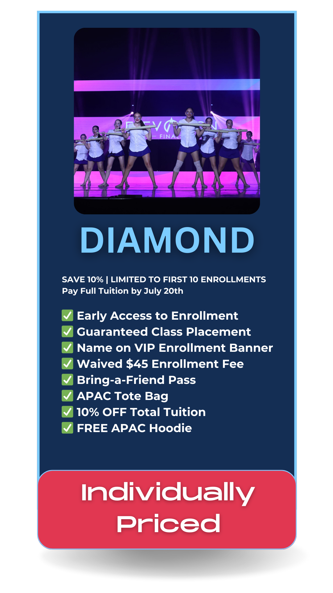 Give your child the gift of joy, growth, confidence, and unforgettable memories at APAC. Our VIP Enrollment Packages reward families who commit early with exclusive perks, guaranteed placement, and the ultimate APAC experience.